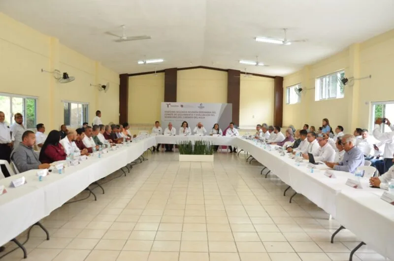 Nuevo Morelos, Tamaulipas. – En seguimiento a las políticas hídricas impulsadas por el gobernador Américo Villarreal Anaya, el secretario de Recursos Hidráulicos para el Desarrollo Social, Raúl Quiroga Álvarez, encabezó en el municipio de Nuevo Morelos la Vigésima Segunda Reunión Ordinaria del Comité de Seguimiento del Semáforo del Cuidado del Agua, acompañado por la alcaldesa Yaneth Nájera Cedillo y la gerente general de COMAPA, Shintia Martínez Rodríguez.