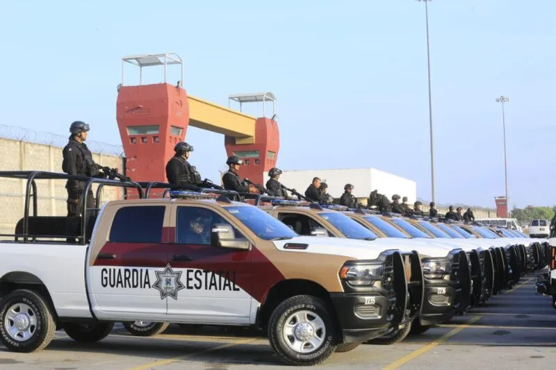 Durante el evento, en el Complejo Estatal de Seguridad Pública, el gobernador dio el banderazo a 14 vehículos blindados tipo Mamba y 15 camionetas pick up Ram 2500, para fortalecer el despliegue operativo de la corporación.