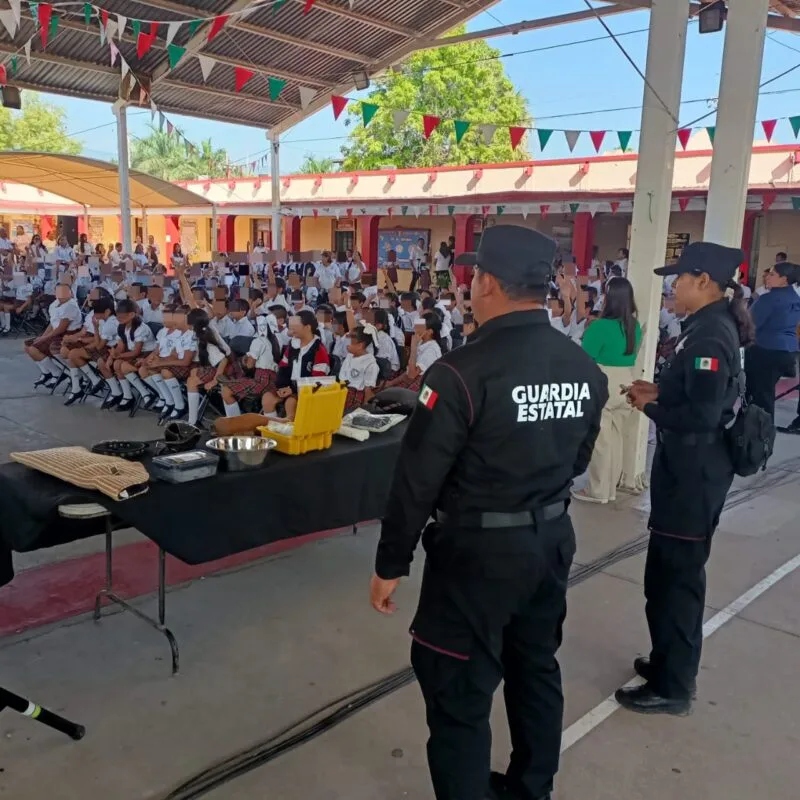 La actividad tuvo como propósito acercar a los cuerpos de seguridad con la comunidad escolar mediante ejercicios de proximidad e interacción educativa.