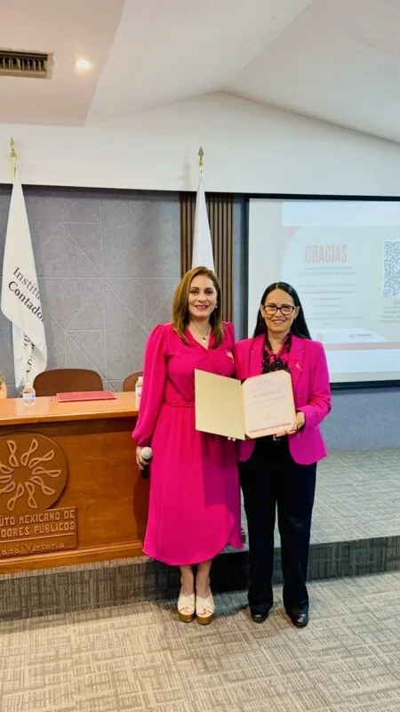 Ciudad Victoria, Tamaulipas.- La secretaria Anticorrupción y Buen Gobierno, Norma Angélica Pedraza Melo estuvo como oradora invitada en el Colegio de Contadores Públicos de Ciudad Victoria A.C., en el marco de las actividades mensuales de esta asociación presidida por Nelly Karina Narváez Wong.