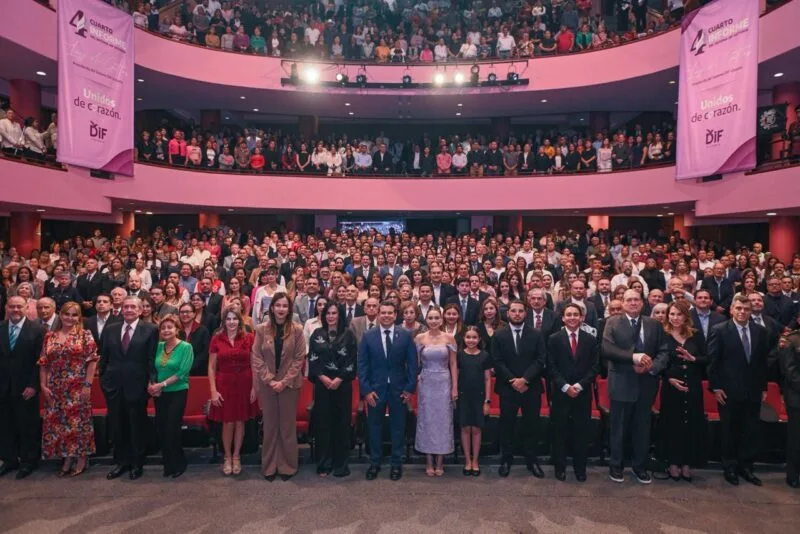 El evento fue en el Teatro Amalia G. de Castillo Ledón, con la asistencia de un sin número de personajes del ámbito federal, estatal y municipal, entre los que estuvieron presentes y atentos vimos al secretario del Ayuntamiento, Hugo Reséndez Silva al lado de su esposa, Martha Cecilia Gojón Báez; a Cesar Saavedra Terán, también con su esposa; al regidor Oscar Narváez Ramos, igual con su esposa, Jessica Brusolo; quienes constataron los avances que ha tenido, sobre todo en alimentación, educación, salud y atención social y sobre todo a los más vulnerables, así como a seguir unidos de corazón por las familias de Victoria.