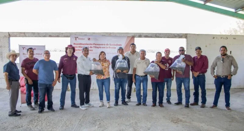 Altamira, Tamaulipas. — La Secretaría de Desarrollo Rural, Pesca y Acuacultura a través de la Subsecretaría de Pesca y Acuacultura, llevó a cabo la siembra de 200 mil alevines de tilapia en el Sistema Lagunario Río Tamesí-Champayán del municipio de Altamira y en la Presa Marte R. Gómez de Camargo, con el objetivo de garantizar la sustentabilidad de los recursos acuáticos y mejorar las condiciones de producción de las comunidades pesqueras del estado.