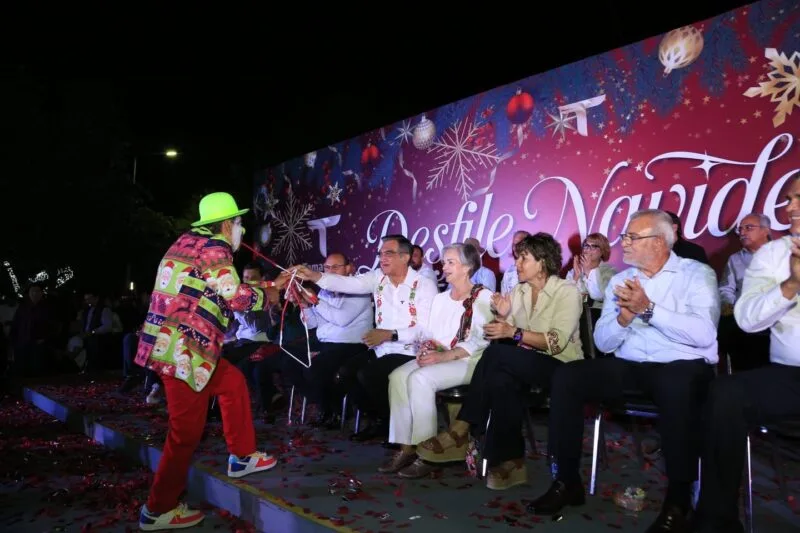 La fiesta navideña arrancó con un desfile de 24 carros alegóricos de las distintas dependencias del Gobierno del Estado que recorrieron toda la avenida Francisco I. Madero, pasando frente al estrado principal, ubicado en el 17 Hidalgo.