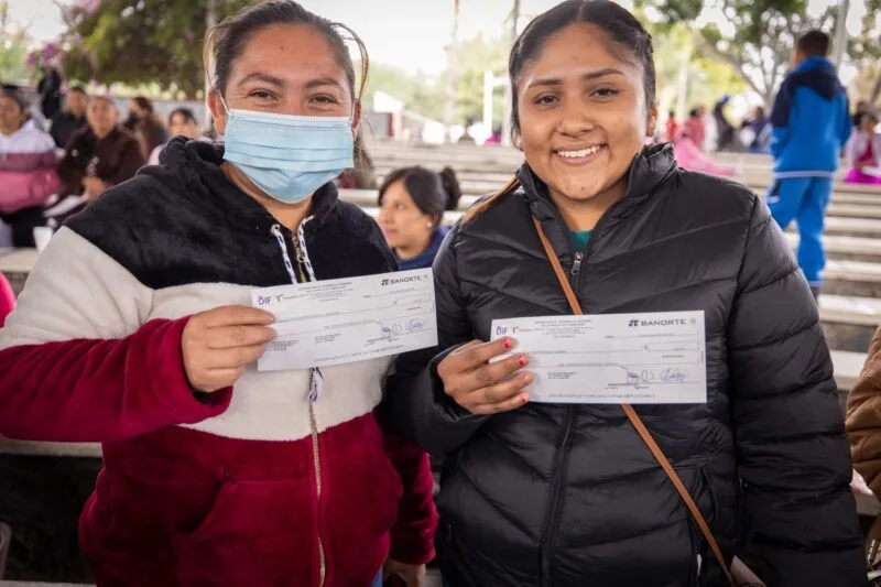 Por tercer año consecutivo, se otorgaron cheques nominales por mil 500 pesos a cada persona voluntaria inscrita en el acta constitutiva de los programas Desayunos Escolares y Comedores Comunitarios “Con Voluntad Paz y Esperanza”, los cuales brindan atención alimentaria a población abierta en toda la entidad.