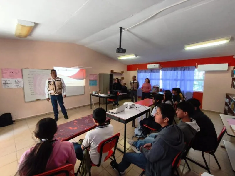 Altamira, Tamaulipas.— Como parte de las acciones permanentes de divulgación y fomento a la pesca responsable, personal de la Subsecretaría de Pesca y Acuacultura, en coordinación con oficiales federales de Pesca de la Comisión Nacional de Acuacultura y Pesca (CONAPESCA), impartieron una plática de concientización a alumnas y alumnos de la Escuela Telesecundaria “Profesora Eusebia Banda Sevilla”, ubicada en el ejido Martín A. Martínez, municipio de Altamira.
