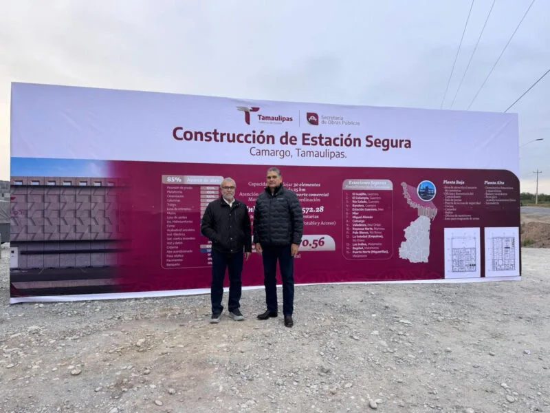 Acompañado por el secretario de Obras Públicas de Tamaulipas, Pedro Cepeda Anaya, el titular de la Secretaría de Seguridad Pública realizó un recorrido por la Estación Camargo, cuya edificación presenta un avance del 85 por ciento. Esta obra forma parte de un proyecto integral que contempla la construcción de 15 Estaciones Seguras, las cuales estarán distribuidas estratégicamente cada 25 kilómetros a lo largo de la franja fronteriza.