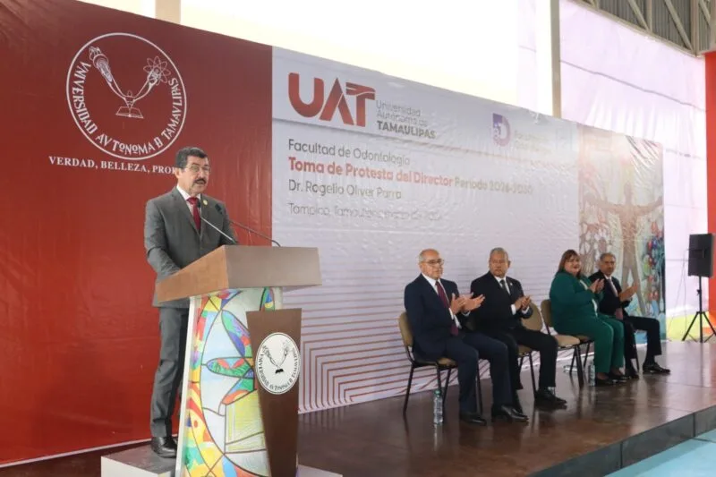 Tampico, Tam.; 19 de marzo de 2026.- El rector de la Universidad Autónoma de Tamaulipas (UAT), Dámaso Anaya Alvarado, encabezó una jornada académica en la Facultad de Odontología del Campus Tampico, donde reafirmó el objetivo de seguir impulsando la calidad de la educación, la inversión en infraestructura y el compromiso social de la comunidad universitaria.