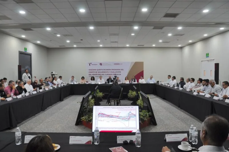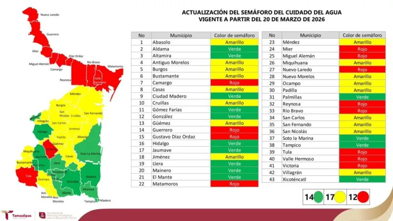 Tampico, Tamaulipas. – El secretario de Recursos Hidráulicos para el Desarrollo Social, Raúl Quiroga Álvarez, presentó la actualización del Semáforo del Cuidado del Agua en el estado, con base en el balance hídrico de las principales cuencas.
