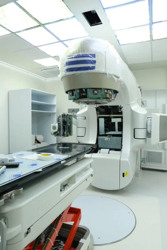 Este es un equipo de alta tecnología para radioterapia, el cual es de mayor beneficio para las y los pacientes, al generar menos efectos secundarios y reducir los tiempos de tratamiento.