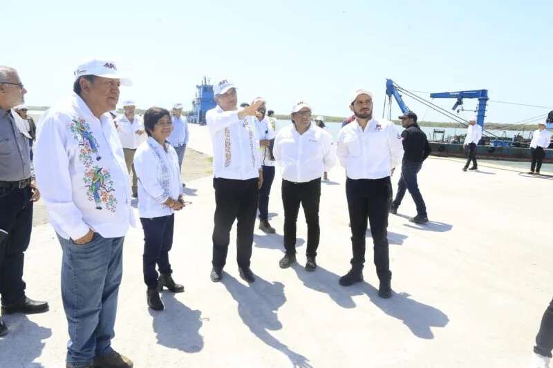 En la zona del muelle, supervisaron los trabajos que realiza la draga Montebello ADR-18, la cual cuenta con un tubo de 2 kilómetros de extensión, de 24 pulgadas de diámetro, con una capacidad de bombeo de 7 mil metros cúbicos por turno.