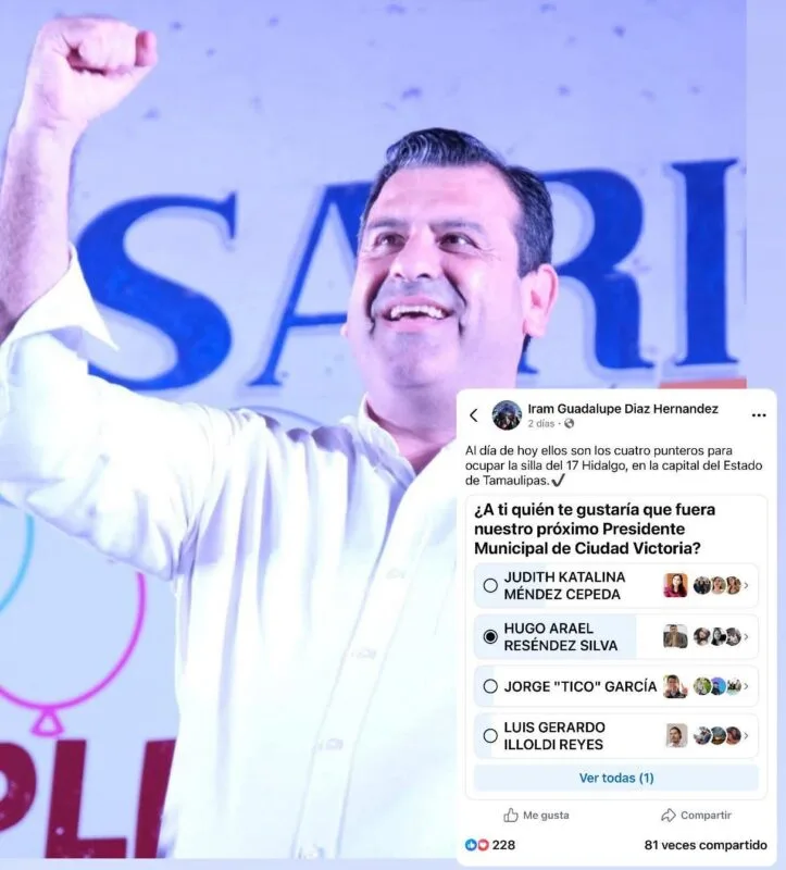 2.- Lista de posibles aspirantes de Morena a las alcaldías de Tamaulipas para el 2027: Ciudad Victoria, Hugo Reséndez Silva; Nuevo Laredo, Ninfa Cantú Deandar; Reynosa, Marcelo Olán Mendoza; Rio Bravo, Malena Rodela de Villegas; San Fernando, Tomas Gloria Requena; Ciudad Madero, Cynthia Lizabeth Jaime Castillo, conocida como «La Comaye»; Altamira, Blanca Araceli Narro Panameño; Tampico, Ursula Patricia Salazar Mojica; Miquihuana, Eunice Guzmán Torres, solo por citar algunas y algunos de acuerdo a encuestas que las y los posesionan ante el electorado tamaulipeco y son puros de Morena.