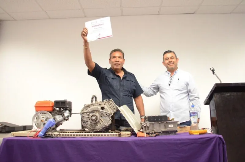 Por su parte, Joel Ricardo Peña Mercado, titular de la carrera de Ingeniería en Sistemas Automotrices, señaló que la capacitación se enfocó en el entendimiento de la operación de los sistemas híbridos y sus variantes en las principales marcas en México, abordando desde su mantenimiento y diagnóstico hasta sus componentes, así como los instrumentos y herramientas para su análisis, integrando tanto teoría como práctica.